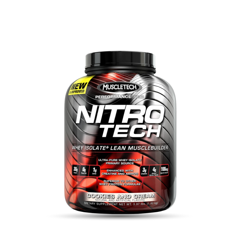 Nitro-Tech est une formule de protéine améliorée, conçue scientifiquement pour tous les athlètes à la recherche de plus de muscle, de force et de meilleures performances avec des sources de protéines propres, pures, et facilement digérées. Chaque cuillère de Nitro-Tech contient 30 grammes de protéines, principalement des isolats de protéines de lactosérum et des peptides de lactosérum. Une forme filtrée pour vous apporter une whey de meilleure qualité. Grace à ce produit, votre corps peut facilement assimiler les acides aminés de la protéine pour construire un muscle vraiment impressionnant. Cela fait de Nitro-Tech un choix idéal en tant que protéine post-entraînement pour stimuler la synthèse des protéines musculaires à tout moment de la journée. Nitro-Tech a été filtrée à laide de la technologie de filtration multiphase pour réduire la quantité de matière grasse, de lactose et d’impuretés par rapport aux sources de protéines moins chères. Il est également riche en glucide avec 10 grammes par dose